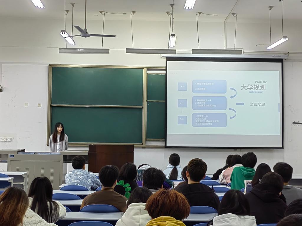 相凱馨同學從個人情況、大學規(guī)劃、學習經(jīng)驗等方面與大家分享自己的經(jīng)歷。她鼓勵同學們要多嘗試,走出自己的舒適圈,開發(fā)自己的潛能,發(fā)現(xiàn)自己的閃光點。對于學習,要多閱讀作品,將復習重點放在專業(yè)課的課本上,并從四六級方面分享自己對大家的建議,希望大家能夠重視。對于大學競賽,要多開展、精開展,從競賽中不斷提高自身的能力。