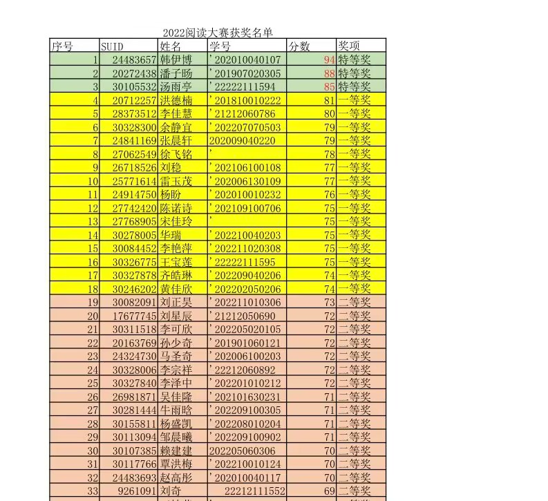 根據(jù)2022年“外研社·國才杯”全國英語閱讀大賽省級(jí)復(fù)賽的通知要求,我校外國語學(xué)院組織開展本次“語翼杯”英語閱讀大賽暨2022年“外研社·國才杯”英語系列比賽校園選拔賽初賽及復(fù)賽。因受疫情影響,本次大賽線上進(jìn)行。在外國語學(xué)院對(duì)本次賽事的大力宣傳下,各院系同學(xué)們積極踴躍地報(bào)名本次閱讀大賽,報(bào)名人數(shù)達(dá)到600人。外國語學(xué)院高度重視,負(fù)責(zé)老師積極組織安排選拔賽,經(jīng)過兩次嚴(yán)格的線上初賽選拔,參賽的492名同學(xué)中有91名同學(xué)進(jìn)入線下復(fù)賽,最終翻譯2001韓伊博,通信1903潘子旸和翻譯研2022湯雨亭等3名同學(xué)以優(yōu)異的成績脫穎而出獲得特等獎(jiǎng),英語2002洪德楠等15名同學(xué)獲得一等獎(jiǎng),勘探2203劉正昊等25名同學(xué)獲二等獎(jiǎng),英語2101胡雨桐等29名同學(xué)獲得三等獎(jiǎng)。其中三名獲得特等獎(jiǎng)同學(xué)將代表我校參加2022年11月5日舉行的“外研社·國才杯”全國大學(xué)生閱讀大賽陜西賽區(qū)的復(fù)賽和決賽。