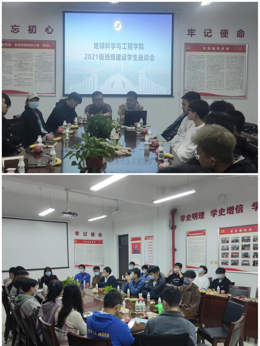 2022年10月20日、21日晚,地球科學與工程學院各年級在開物樓507分別開展“筑牢疫情防線,強化班級建設”主題學生座談會。座談會由各年級輔導員主持,班級學生干部、學生代表參加座談會。