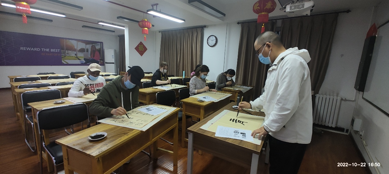 國際教育學(xué)院在明德校區(qū)為留學(xué)生開設(shè)中國書法興趣課堂