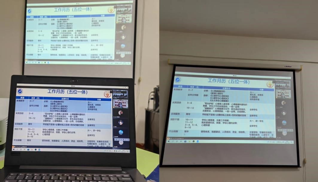 會上,肖瓊教授首先介紹了學生心理成長指導中心的發(fā)展歷程和文化理念,我校心理育人工作的基本任務、隊伍構成、宣傳平臺、工作特色和“學校---院系---班級---生活園區(qū)---師生個體”五級心理健康教育暨心理危機預警防控體系。
