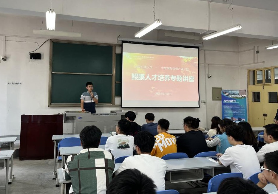 為助力高水平共育新一代鯤鵬信息創(chuàng)新技術人才培養(yǎng),迎接“云+5G+AI+大數(shù)據”新時代的到來,9月29日西安石油大學電子工程學院與中軟國際信創(chuàng)產業(yè)學院在博覽樓316聯(lián)合舉辦了鯤鵬人才培育專題講座。中軟國際教育科技集團(陜西)執(zhí)行校長殷建軍、商務經理馬欣悅、電子工程學院2020級輔導員李昱昊及人工智能2020級學生共70余人參加講座。本次講座由馬欣悅主持。