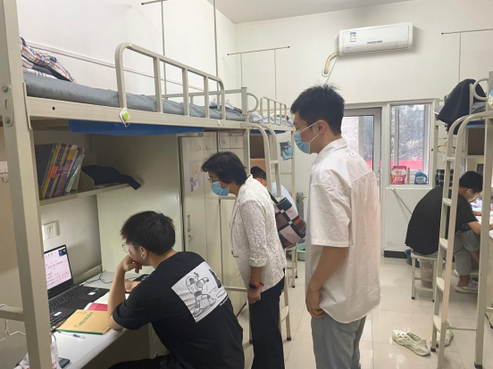 為有效開展線上學(xué)習(xí)工作,幫助同學(xué)們盡快回到在校規(guī)律嚴謹?shù)膶W(xué)習(xí)和生活狀態(tài),提高學(xué)習(xí)效率,督促學(xué)生按時完成線上學(xué)習(xí)任務(wù),學(xué)院黨委副書記畢軼慧帶領(lǐng)各年級輔導(dǎo)員于9月19日深入學(xué)生宿舍檢查線上教學(xué)及學(xué)生學(xué)習(xí)情況。
