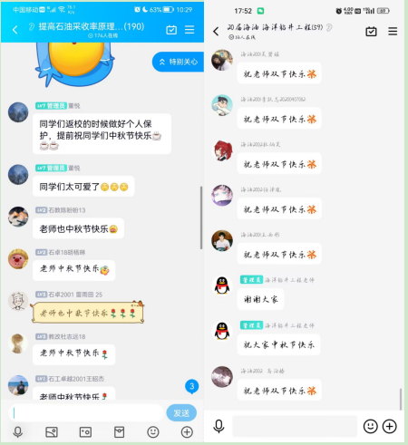 學(xué)院2022屆已就業(yè)研究生在就業(yè)單位錄上祝福視頻祝福母校老師;本科生在線上上課時(shí),利用課間或下課時(shí)自發(fā)組織向老師送去送祝福。同學(xué)們?cè)?/span>視頻上的每一幀,公屏上的每一句話,都充滿著對(duì)老師的敬意與祝福。同學(xué)們的祝福,老師們的感動(dòng)匯合在一起,整個(gè)教師節(jié)充滿了溫馨的氣息。