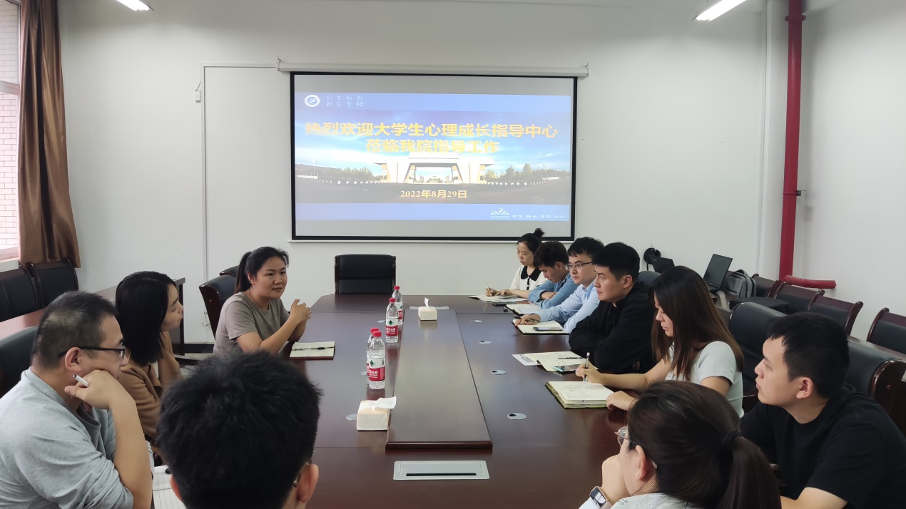 8月29日,學(xué)生心理成長(zhǎng)指導(dǎo)中心辦公室主任焦文潔,專職教師趙晶、閆高斌一行3人,到經(jīng)濟(jì)管理學(xué)院開(kāi)展心理健康教育工作交流座談,座談會(huì)在鄠邑校區(qū)崇文樓305會(huì)議室舉行,經(jīng)濟(jì)管理學(xué)院學(xué)生工作辦公室全體輔導(dǎo)員參加本次活動(dòng)。