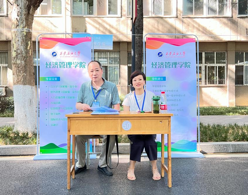 同時(shí),為配合學(xué)校招生辦公室做好“校園開放日”宣傳活動(dòng),學(xué)院教學(xué)辦公室主任袁靜和副教授程駿在雁塔校區(qū)負(fù)責(zé)經(jīng)濟(jì)管理學(xué)院咨詢點(diǎn)現(xiàn)場(chǎng)咨詢,與其他院(系)一起為來校參觀、咨詢的考生及家長提供細(xì)致、耐心的咨詢服務(wù)。
