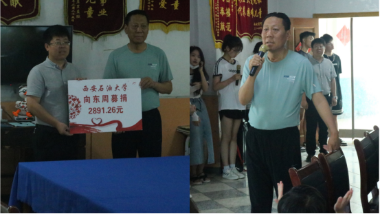 到達(dá)兒童村,機(jī)械工程學(xué)院的師生受到了孩子們的熱烈歡迎,團(tuán)委書(shū)記文愛(ài)國(guó)老師代表學(xué)院將前期一周募捐的善款悉數(shù)贈(zèng)予兒童村,并對(duì)此次主題實(shí)踐活動(dòng)做了講話(huà),他表示:一是西安石油大學(xué)機(jī)械工程學(xué)院自1997年以來(lái)二十六年不間斷赴兒童村開(kāi)展愛(ài)心公益活動(dòng),廣大青年大學(xué)生們?cè)趯W(xué)中做、在做中學(xué),努力把自己培養(yǎng)成德智體美勞全面發(fā)展的社會(huì)主義合格建設(shè)者和可靠接班人。二是希望黨員、入黨積極分子同學(xué)們傳承好二十六年機(jī)械學(xué)子公益活動(dòng)的初心,敢于擔(dān)當(dāng),勇于作為,跑好“大手拉小手,愛(ài)心暖東周”的接力賽。三是希望兒童村的孩子們能樂(lè)觀積極生活,健康成長(zhǎng),努力成才,樹(shù)立遠(yuǎn)大理想信念,珍惜學(xué)習(xí)機(jī)會(huì),養(yǎng)成良好品行早日成為社會(huì)有用之才。
