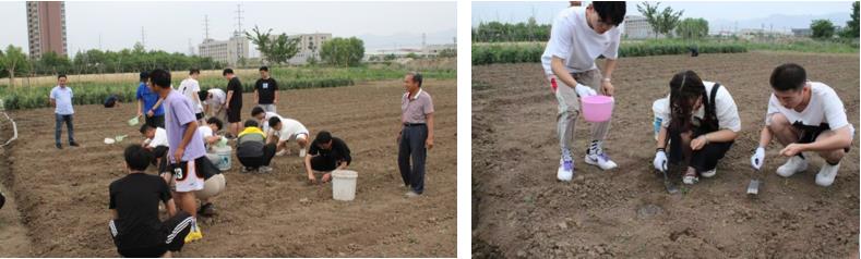 在一個(gè)半小時(shí)的時(shí)間里,參與活動(dòng)的同學(xué)們生拿著鐵锨、水桶、玉米種子,三人成組,分工協(xié)作,翻耕松土、挖坑潤(rùn)土、播下種子、填土覆蓋。在校園管理中心專(zhuān)業(yè)人員指導(dǎo)下,環(huán)環(huán)緊扣,有條不紊,井然有序,圓滿(mǎn)完成此次勞動(dòng)實(shí)踐活動(dòng)。大家切身體驗(yàn)了玉米種植全過(guò)程,感知糧食來(lái)之不易,在心里也種下了一?!俺缟袆趧?dòng)、尊重勞動(dòng)”的種子,期待生根發(fā)芽、開(kāi)花結(jié)果!
