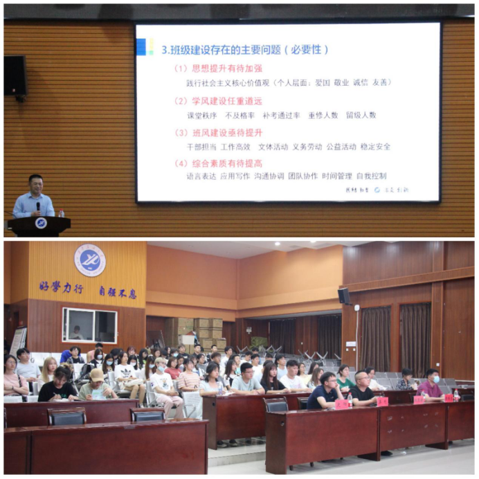 龐秉謙副部長(zhǎng)圍繞加強(qiáng)班級(jí)建設(shè)的重要性和必要性、如何做好班級(jí)建設(shè)工作以及如何做一名優(yōu)秀的班級(jí)學(xué)生干部三個(gè)方面展開(kāi)培訓(xùn)。他指出,加強(qiáng)班級(jí)建設(shè)對(duì)推動(dòng)落實(shí)立德樹(shù)人根本任務(wù),踐行“為黨育人、為國(guó)育才”使命具有重要意義,當(dāng)前班級(jí)建設(shè)在思想提升、學(xué)風(fēng)建設(shè)、班風(fēng)建設(shè)、綜合素質(zhì)等方面依然存在不足。他強(qiáng)調(diào),加強(qiáng)班級(jí)建設(shè)一是要配齊配強(qiáng)班級(jí)“兩委”干部,做好學(xué)生干部的推薦、選拔和換屆工作;二是要規(guī)范班級(jí)工作的日常運(yùn)行機(jī)制,以思想建設(shè)和作風(fēng)建設(shè)為重點(diǎn),定期開(kāi)展集體學(xué)習(xí)研討;三是要制定目標(biāo)計(jì)劃,總結(jié)經(jīng)驗(yàn)不足,有針對(duì)性加強(qiáng)能力培養(yǎng),提升班級(jí)建設(shè)工作的實(shí)效性;四是要根據(jù)班級(jí)實(shí)際情況,制定年度建設(shè)目標(biāo)計(jì)劃,明確分工、責(zé)任到人,跟蹤完成情況,及時(shí)反饋調(diào)整優(yōu)化。