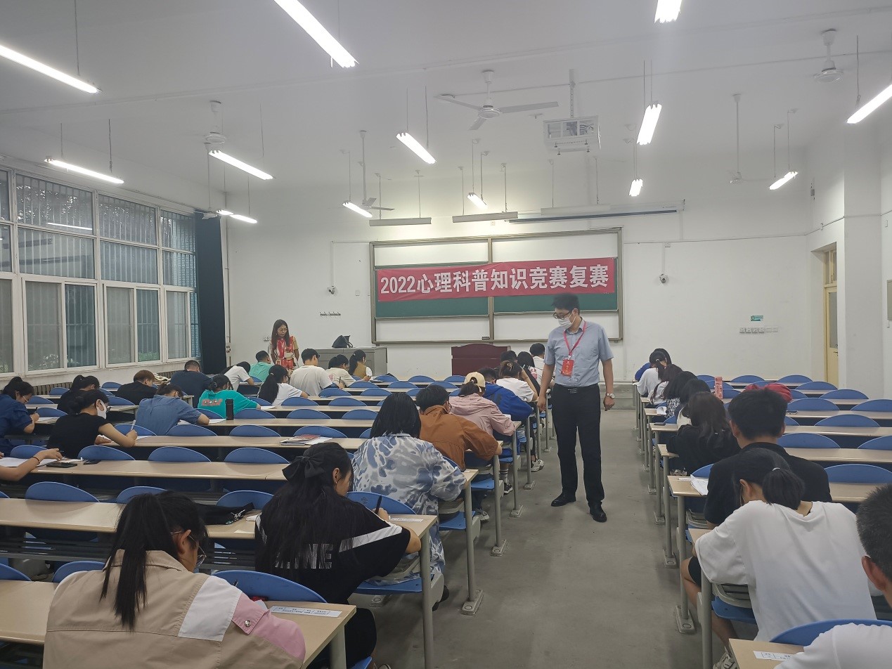 為進(jìn)一步落實(shí)我校第七屆“陽光護(hù)航”心理育人季活動(dòng),引導(dǎo)廣大同學(xué)積極關(guān)注自身和他人的心理健康,學(xué)習(xí)和傳播心理健康知識(shí),提高同學(xué)們對(duì)心理健康的認(rèn)知水平,增加自助和朋輩互助能力,524日晚,西安石油大學(xué)2022年心理健康科普知識(shí)競賽復(fù)賽同時(shí)在鄠邑校區(qū)B106和雁塔校區(qū)學(xué)生心理成長指導(dǎo)中心舉行,兩邊分別由國際教育學(xué)院副院長顏庭星和學(xué)生心理成長指導(dǎo)中心主任肖瓊巡考,學(xué)生心理成長指導(dǎo)中心教師魏曉言、焦文潔、研究生助理賀妍共同監(jiān)考。