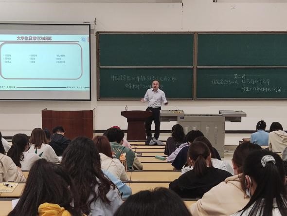 劉部長(zhǎng)從高等院校、立德樹(shù)人、大學(xué)生日常行為規(guī)范等多個(gè)維度闡明學(xué)校行為規(guī)范教育的必要性和重要性,采用由點(diǎn)到面、由淺到深的方式互動(dòng)式地進(jìn)行講解,通過(guò)梳理學(xué)校管理過(guò)程中出現(xiàn)的學(xué)生不文明行為和穩(wěn)定安全案例,要求學(xué)生干部們嚴(yán)于律己、以身作則,注重一點(diǎn)一滴、注意一言一行,不斷完善自我,以實(shí)際行動(dòng)輻射帶動(dòng)周邊同學(xué),形成良性互動(dòng),持續(xù)深入推進(jìn)大學(xué)生行為規(guī)范教育,有效促進(jìn)學(xué)生發(fā)展,維護(hù)學(xué)校文明和諧的良好風(fēng)貌。