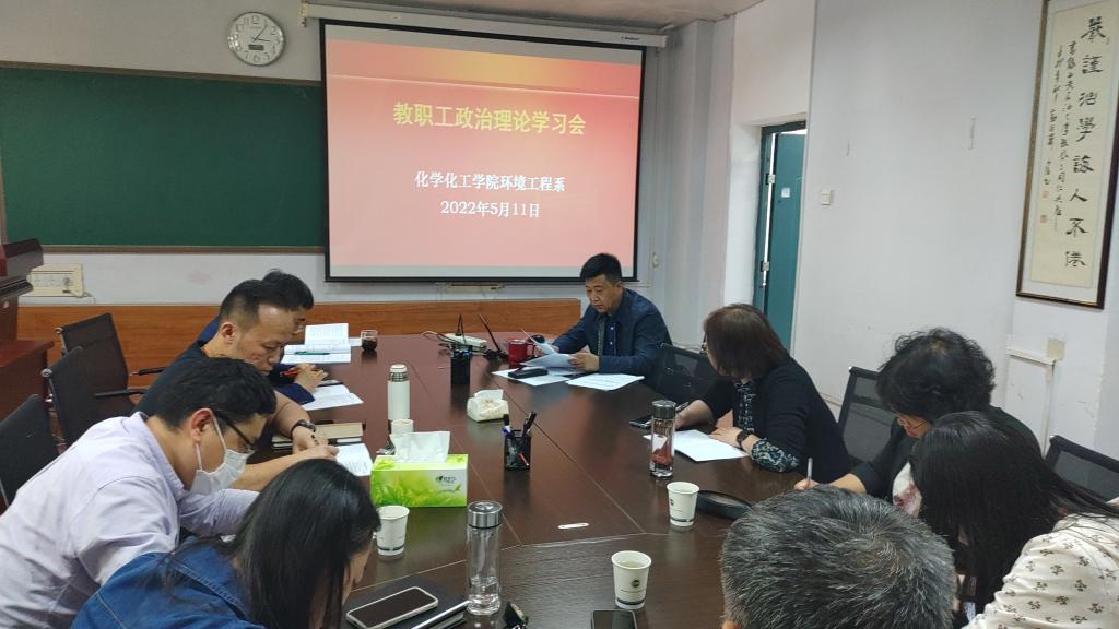 為更好貫徹落實《西安石油大學教師政治理論學習制度》,發(fā)揮基層支部黨建引領(lǐng)作用,結(jié)合學院黨委關(guān)于做好巡視整改落實暨教育領(lǐng)域突出問題專項整治工作推進會的具體安排,5月11日下午,化學化工學院環(huán)境工程系在雁塔校區(qū)2號實驗樓212會議室召開了全體黨員、教師政治理論學習會。會議由環(huán)境工程系教工黨支部書記屈撐囤主持,支部全體黨員和環(huán)境系教師共14人參加了會議。