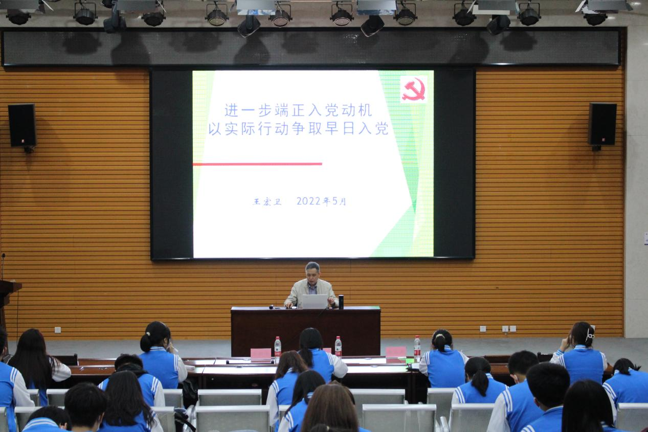 典禮結(jié)束后,經(jīng)濟管理學(xué)院黨委書記王宏衛(wèi)以“進一步端正入黨動機,以實際行動爭取早日入黨”為題,為學(xué)員們講授黨課第一講。他從中國共產(chǎn)黨的性質(zhì)和宗旨出發(fā),緊扣新時代黨的建設(shè)總要求,系統(tǒng)講授了黨章規(guī)定的黨員條件和標(biāo)準(zhǔn),全面闡述了新時代大學(xué)生端正入黨動機的重要意義。強調(diào)正確的動機是入黨的首要問題,是加強黨性修養(yǎng)的終身課題,是保持黨的先進性和純潔性、推進全面從嚴(yán)治黨向縱深發(fā)展的重要內(nèi)容。作為入黨積極分子要進一步端正入黨動機,認真學(xué)習(xí)黨的基本理論、基本路線、基本方略,以實際行動積極向黨組織靠攏。他鼓勵同學(xué)們要不斷提高政治站位,堅定理想信念,堅守初心使命,立志成才報國,恪守清正廉潔,奮勇爭先、當(dāng)青春榜樣,爭取早日加入中國共產(chǎn)黨。