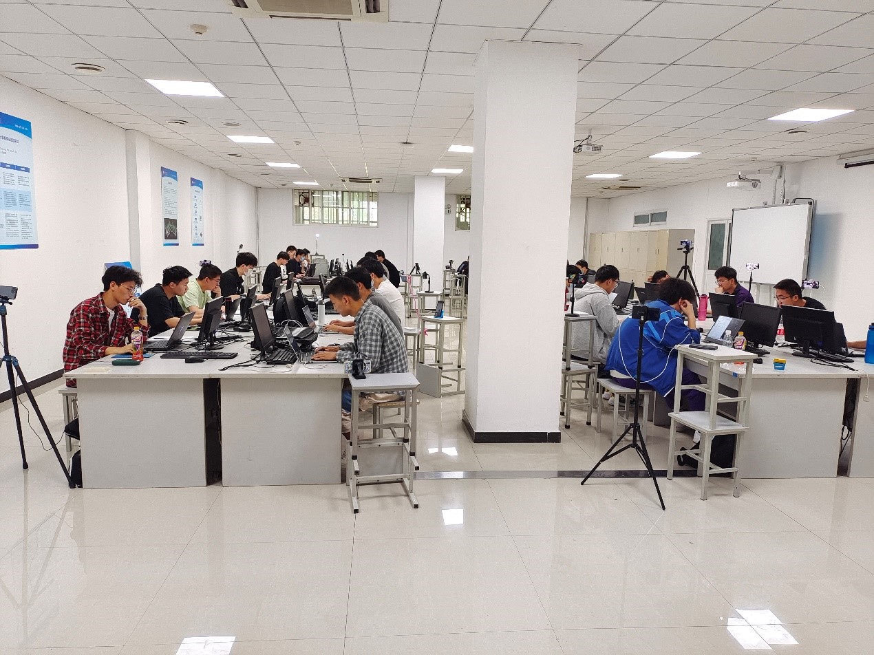 為籌備此項賽事,學院于2021年11月末開始進行人員選拔,為確保賽事順利進行,學院進行了嚴密組織和全力保障,按照組委會要求完成了雙機位設備安裝、環(huán)境調(diào)試和網(wǎng)絡測試工作,并于4月17日組織進行模擬賽。在競賽當天,按照疫情管控措施,學院對所有參賽選手進行體溫檢測、雙碼核驗,引導錯峰進場;全體指導教師對選手們順利比賽提供了周到服務。此次團體程序設計天梯賽,既鍛煉了同學們的實力,又培養(yǎng)了同學們的團隊協(xié)作能力,學院繼續(xù)秉持以賽促學,以賽促教,大力開展各類學科競賽。