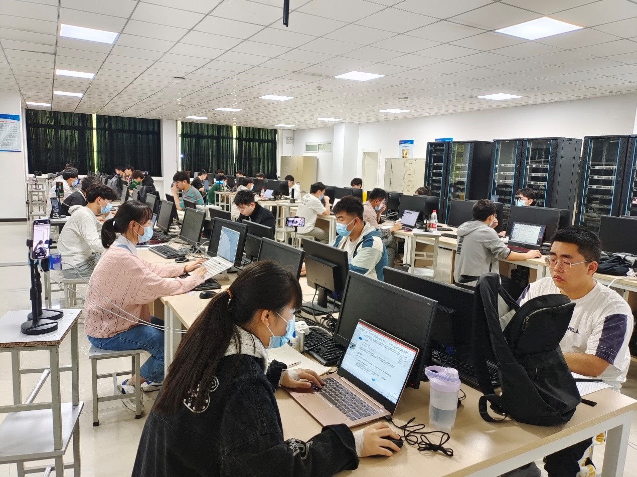 第十三屆藍(lán)橋杯是我校參賽人數(shù)最多、規(guī)模最大的一屆,也是獲獎(jiǎng)人數(shù)最多、成績最突出的一屆。多年以來,計(jì)算機(jī)學(xué)院一直高度重視該項(xiàng)賽事,積極鼓勵(lì)和支持學(xué)生參加大賽,全力做好各項(xiàng)組織和保障工作。同時(shí),學(xué)院投入大量資金用于購買相關(guān)課程,制定培訓(xùn)方案,利用周末和晚上錯(cuò)峰進(jìn)行環(huán)境模擬培訓(xùn)。比賽當(dāng)天,按照疫情管控要求,所有學(xué)生佩戴口罩、攜帶證件、雙碼核查、體溫合格后有序進(jìn)場(chǎng)。考試期間,學(xué)院設(shè)立巡考團(tuán)隊(duì),全程參與各環(huán)節(jié)的考務(wù)工作,為參賽選手提供幫助與服務(wù)。本屆藍(lán)橋杯實(shí)現(xiàn)了我院學(xué)子在編程競(jìng)賽賽事上的突破,大大激發(fā)了學(xué)生對(duì)于編程的熱情。計(jì)算機(jī)學(xué)院將一如既往地踐行“以賽促教、以賽促學(xué)、以賽促發(fā)展”的教學(xué)理念,大力支持全院師生參加各類學(xué)科學(xué)生競(jìng)賽。