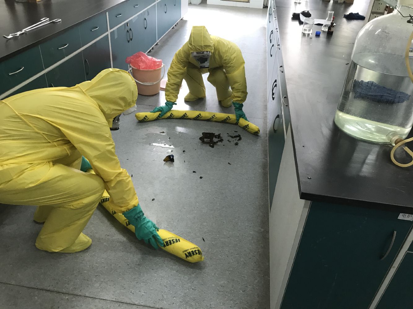 本次演練模擬了實(shí)驗室內(nèi)突發(fā)丙酮泄漏安全事故,分為人員急救與疏散、事故信息上報、環(huán)境污染應(yīng)急處置、環(huán)境監(jiān)測與現(xiàn)場恢復(fù)、演練總結(jié)等環(huán)節(jié),旨在檢驗應(yīng)急處置流程的及時性和可操作性。在演練期間,參與的老師們聽從指揮、動作迅速、疏散有序,參演各部門分工明確、協(xié)調(diào)聯(lián)動、處置果斷。