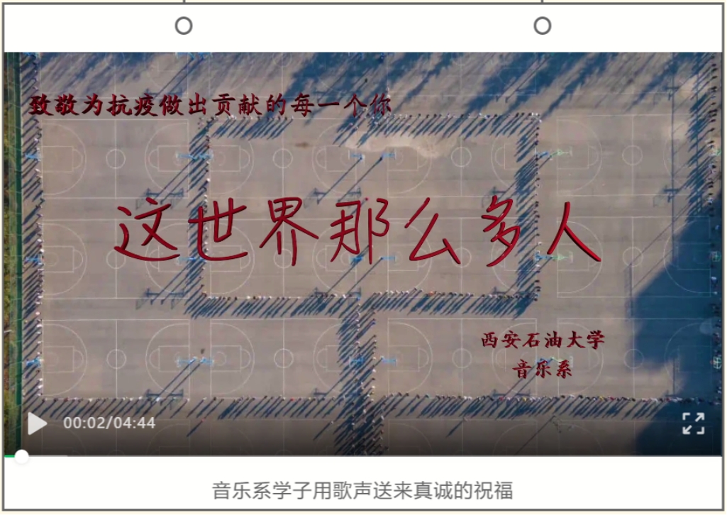 我系抗疫系列視頻豐富了學生們封閉的宿舍文化活動,在同學們中間引起了強烈反響。同學們制作的視頻有的風趣幽默,有的嚴肅活潑,有的深情感人,體現(xiàn)了我系學生良好的專業(yè)素養(yǎng)和積極向上的人生態(tài)度。他們是音樂系的縮影,是西石大的縮影。作為西安石油大學音樂系的一份子,希望長安,常安!勝利就在遠方,讓我們再努力地堅持一下,一起迎來更加美好的明天!