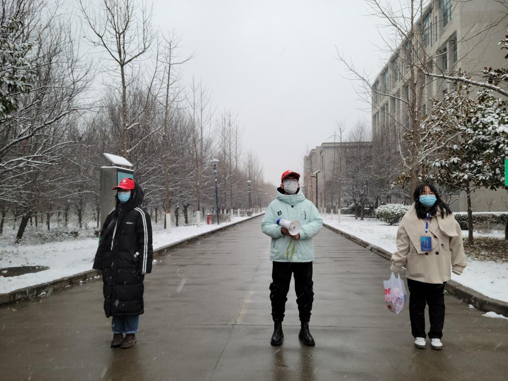 作為學生干部,謝儒瀾自告奮勇地奔赴在校園疫情防控第一線,協(xié)助工作人員守護著考研學子的健康安全。凌晨六點,夜色還未褪去她便與志愿者們來到各個指引位置上??佳袝r為學長學姐們指引方向是她的主要工作,凌晨時恰好下起紛飛大雪,她在排隊進考場時送上暖寶寶及午間休息時送上熱姜湯以保證考研學子們更好的投入考試,給他們提供力所能及的幫助。在21歲的第一天謝儒瀾選擇放下懶惰,將成長實踐到疫情志愿服務當中,用自己的信念為校園傳遞愛與力量。21歲的生日雖然沒有家人的陪伴,但有兩百多名志愿者在風雪中與之相伴,讓這平凡的一天變得充實而有意義!