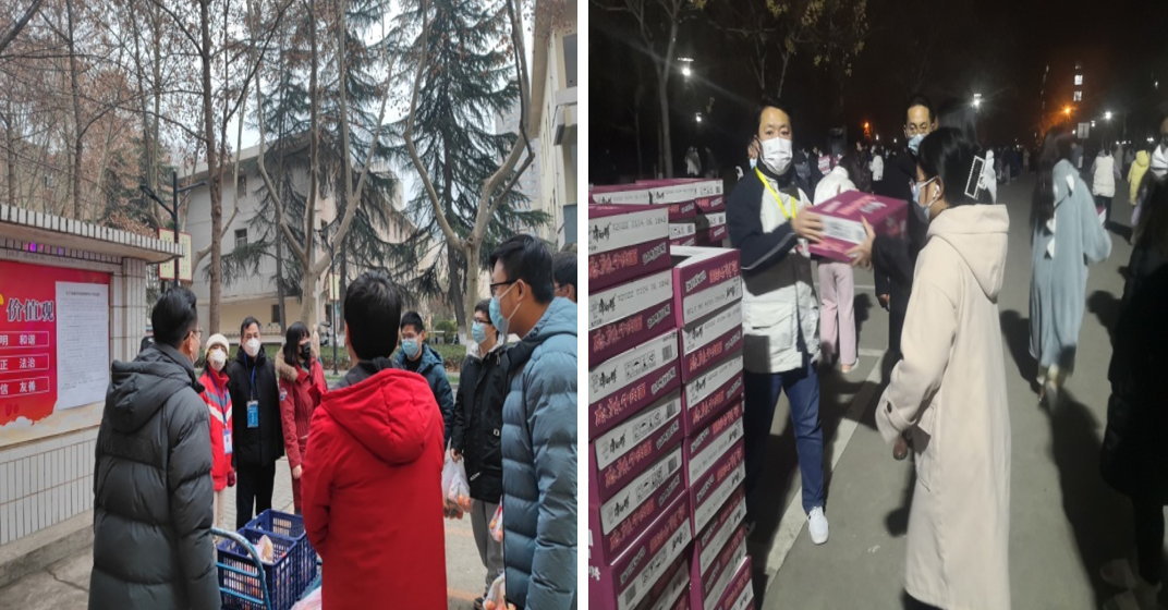 教師黨員在疫情面前更是顯示了戰(zhàn)斗堡壘的作用。院黨委為師生們購買了防護口罩、一次性手套等防疫物資,用特殊黨費為全體學(xué)生購買了水果,院領(lǐng)導(dǎo)、輔導(dǎo)員、導(dǎo)師代表一起為學(xué)生逐一發(fā)放,幾位研究生在和導(dǎo)師聊天中無意說到想吃肉,白燕老師悄悄做了炸雞翅送到學(xué)生手上。和萬霖老師對口服務(wù)學(xué)院一戶居家隔離的老師,他在寒風(fēng)中排了3個小時的隊,為居家隔離的老師購買了充足的菜品,沒顧上給自己家買上一棵菜。雁塔校區(qū)的研究生經(jīng)常收到導(dǎo)師、輔導(dǎo)員愛心投喂。鄠邑校區(qū)長期堅守的老師們顧不上自己吃飯,組織大家有序檢測核酸、分發(fā)愛心捐贈和防疫物資。他們還組織本科生開展了宿舍清潔小技能比賽。郭文閣教授為全院研究生做題為“如何撰寫學(xué)位論文”的線上學(xué)術(shù)報告。雁塔校區(qū)研究生輔導(dǎo)員人手緊缺,馮德全老師、張旋老師二話不說,第一批參加了研工部安排的教師值班;發(fā)放物資運輸工具短缺,丁繼軍老師直接把自己家的私家車作為運輸工具為大家運輸物資,家里有孩子有老人的多位老師安排好老人孩子,上完網(wǎng)課就直接投入志愿服務(wù)當(dāng)中……。據(jù)不完全統(tǒng)計,僅雁塔校區(qū)就有32位在校黨員教師主動請纓,參加了核酸檢測、物資發(fā)放、藥品購買、宿舍值班等志愿服務(wù)。在校的所有教工支部書記帶頭參加了多項志愿服務(wù)。