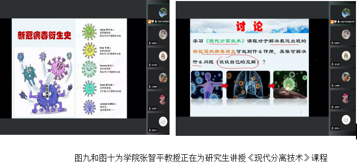 特別值得一提的是,化學(xué)化工學(xué)院專業(yè)課授課老師都在線上課堂一開始時,結(jié)合當(dāng)下疫情防控,深挖思政元素,給研究生介紹有關(guān)冠狀病毒和抗病毒藥物的知識,讓同學(xué)們學(xué)習(xí)了新型冠狀病毒的特點、防控重點工作、藥物研發(fā)與使用現(xiàn)狀等知識。