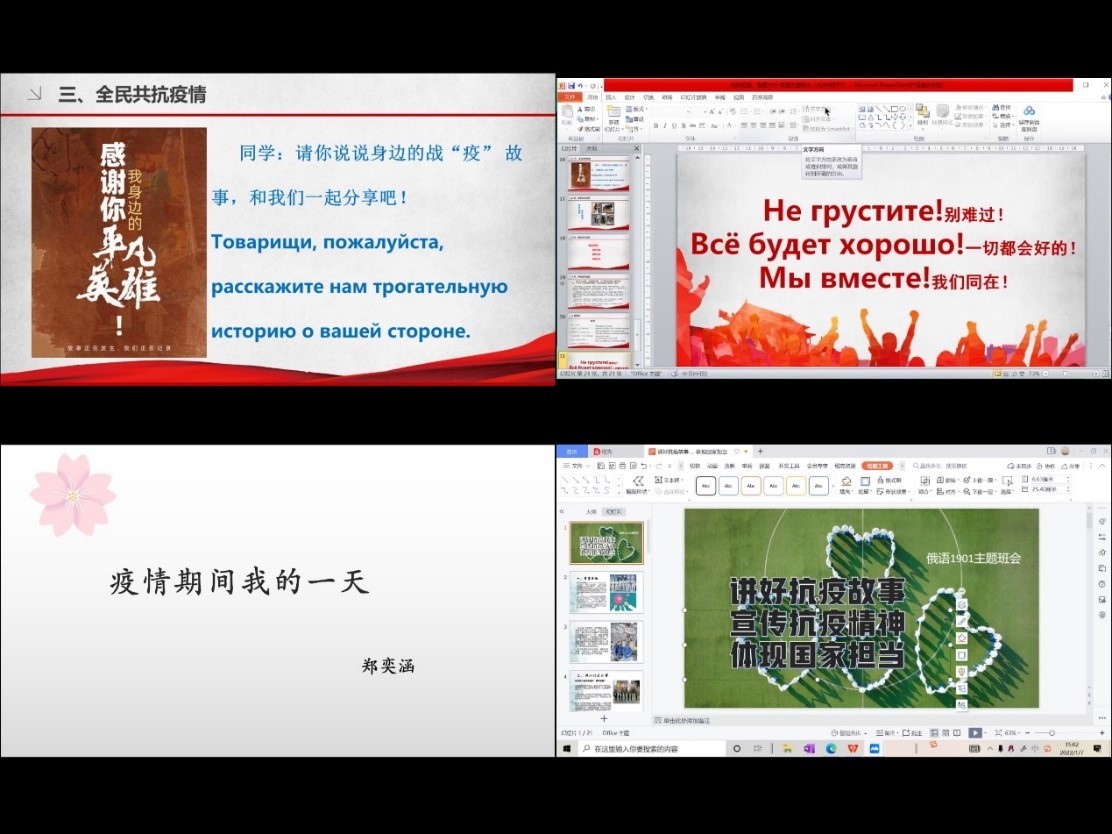 2022年1月,學(xué)院以班級為單位組織召開“同舟共濟(jì),抗擊疫情”云端雙語線上主題班團(tuán)會,弘揚(yáng)偉大抗疫精神,講好抗疫故事。帶領(lǐng)全體學(xué)生學(xué)習(xí)了《西安石油大學(xué)疫情防控文明公約》,引導(dǎo)學(xué)生在疫情面前提高站位,正確看待網(wǎng)絡(luò)信息,不信謠不傳謠!弘揚(yáng)正能量,學(xué)會感恩,攜手并肩,抗擊疫情。