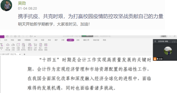 會計系教師吳勛在《中級財務會計》課程在線學習網(wǎng)站首頁發(fā)布“攜手抗疫、共克時艱”信息,在課程導論中引入會計改革與發(fā)展“十四五”規(guī)劃綱要,引導學生找準會計準則國際趨同和解決我國實際問題之間的平衡點和結(jié)合點,更好促進我國企業(yè)創(chuàng)新和經(jīng)濟高質(zhì)量發(fā)展。