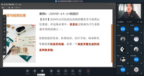 會計系教師張立民在《會計信息系統(tǒng)》課程教學中引入疫情防控工作中的大數(shù)據(jù)分析作為課程引導案例,引導學生堅定抗疫信念,同時增強學生對信息系統(tǒng)類課程的主觀能動性。