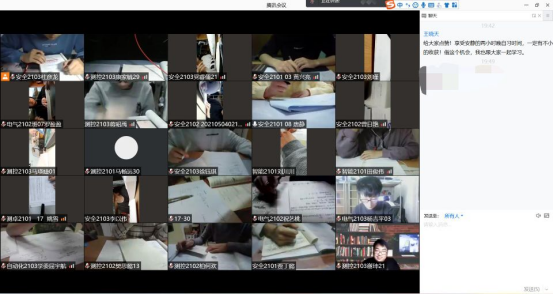 線上自習(xí)活動通過騰訊會議APP開展,時間為每日19:00--21:00,自習(xí)過程中要求全程靜音并打開攝像頭,拍攝手部及書本,由學(xué)院團委學(xué)習(xí)部干事負責監(jiān)督管理。