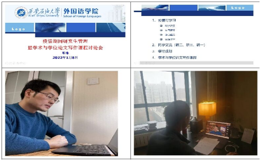 為落實(shí)西安市和學(xué)校疫情防控決策部署和工作要求,根據(jù)研究生院關(guān)于疫情期間研究生教育教學(xué)工作安排,外國(guó)語(yǔ)學(xué)院統(tǒng)籌謀劃疫情防控期間研究生教育教學(xué)工作,積極開(kāi)展線(xiàn)上教學(xué),多平臺(tái)多渠道,確保研究生教育教學(xué)工作平穩(wěn)有序開(kāi)展。