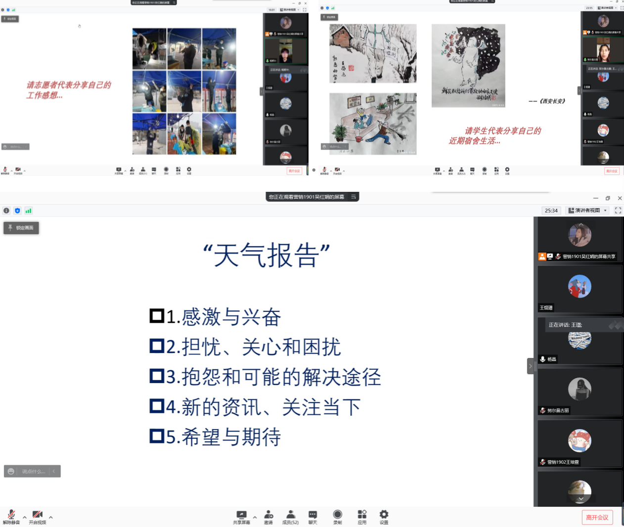 最后,由王君萍院長(zhǎng)對(duì)本次會(huì)議作總結(jié),王院長(zhǎng)建議由營(yíng)銷專業(yè)兩個(gè)班班委組織一些團(tuán)隊(duì)性活動(dòng),帶動(dòng)起大家的學(xué)習(xí)積極性,增強(qiáng)大家的集體榮譽(yù)感,幫助大家盡快明確自身定位,提前做好職業(yè)準(zhǔn)備。她倡議大家,在封控管理期間,充分利用各種渠道,例如大學(xué)慕課,bilibili等平臺(tái)開展線上學(xué)習(xí),不斷充實(shí)提升自己。王院長(zhǎng)向同學(xué)們贈(zèng)言“無論外部怎么樣變化,自身站穩(wěn)腳跟,穩(wěn)步前進(jìn)!”