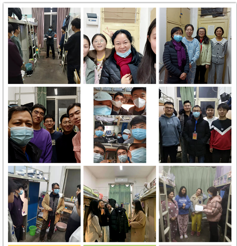 一是全過程陪伴。學院黨政領導、課任教師、輔導員老師常態(tài)化深入學生宿舍,就學生們關心的疫情形勢與政策、科學防護知識、愛國奉獻擔當、校園管理紀律、生活學習安排、心理狀態(tài)調試、當下問題訴求等內容進行解讀、安撫、溝通和反饋。同時,作為學工干部全員堅守在鄠邑校區(qū)的學院,學工辦全體輔導員老師堅持常態(tài)化深入宿舍,及時關注學生思想動態(tài)和心理動態(tài),做好學生與學校之間良性溝通的橋梁。二是全過程教育。學院印發(fā)關于開展疫情防控期間開展線上主題班團會的通知和關于開展線上宿舍系列文化活動的通知文件,將思想政治教育和文化育人結合起來,確保疫情期間思想政治教育有成效,文化育人有成果。三是全過程管理。學院黨委堅持底數清楚,精準掌握學院教職工及其家屬和租戶人數,確保每日核酸通知無遺,檢測全覆蓋;教師先鋒隊通過走訪宿舍、校園志愿服務等方式,將解決實際問題與強化人文關懷結合起來;學工辦嚴格落實晨午檢、晚簽到、核酸核查、線上教學管理等工作制度,堅持線上線下相結合、督促與檢查并重的方式,確保各項過程管理行之有痕、落到實處。