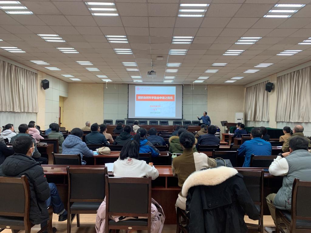 報告會上,馬飛教授結合多年國家自然科學基金申報工作的經(jīng)驗,分析了當前國家自然科學基金工作面臨的形勢、機遇和挑戰(zhàn)。他指出,申報的老師們要領會申請指南、突出創(chuàng)新點、體現(xiàn)特色、科學制定研究計劃,進一步凝煉申請書。此外他還對申報書撰寫的一些核心問題進行了解析,強調(diào)“好的申報書是反復修改出來的”,需要大量閱讀參考資料,要緊跟國家重大需求,結合研究方向,凝練科學問題。在撰寫過程中多溝通、多請教專家教授,反復打磨,注重文字規(guī)范,高度凝練,精雕細琢。