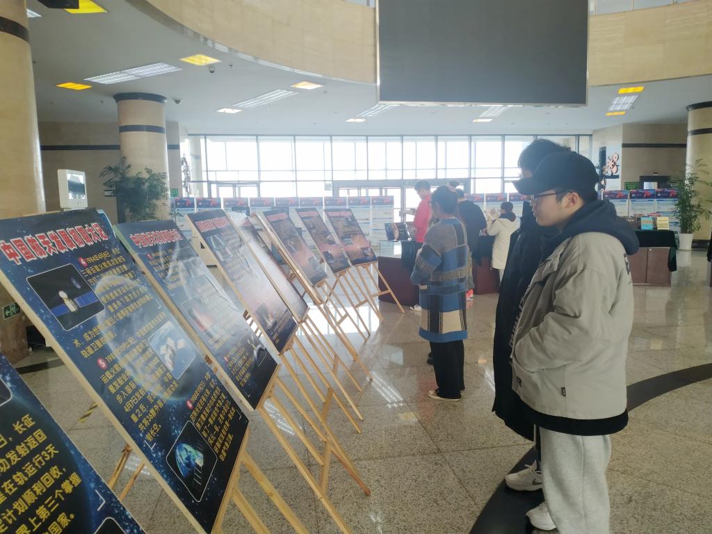 1118日上午,“普及航天知識(shí)?弘揚(yáng)航天精神”展覽在鄠邑校區(qū)圖書館二樓大廳開展。展覽分為三個(gè)部分:“航天圖書展”“航天圖片展”“航天精神譜系展”?!昂教靾D書展”布設(shè)了航天科普?qǐng)D書、航天院士傳記系列圖書、航天英雄、世界航天發(fā)展史、中國(guó)航天發(fā)展史等5個(gè)展臺(tái),展出館藏100余冊(cè)圖書;“航天圖片展”布設(shè)了“中國(guó)航天發(fā)展初期大事記、我國(guó)神舟系列飛船發(fā)展大事記、中國(guó)航天科學(xué)家——追尋飛天的足跡、中國(guó)十大飛天航天員”等4個(gè)板塊13張展板;“航天精神譜系展”從形成過程、精神載體、精神內(nèi)涵等3個(gè)方面,介紹了航天傳統(tǒng)精神、“兩彈一星”精神、載人航天精神、北斗精神、探月精神的形成過程、基本內(nèi)涵和時(shí)代價(jià)值。
