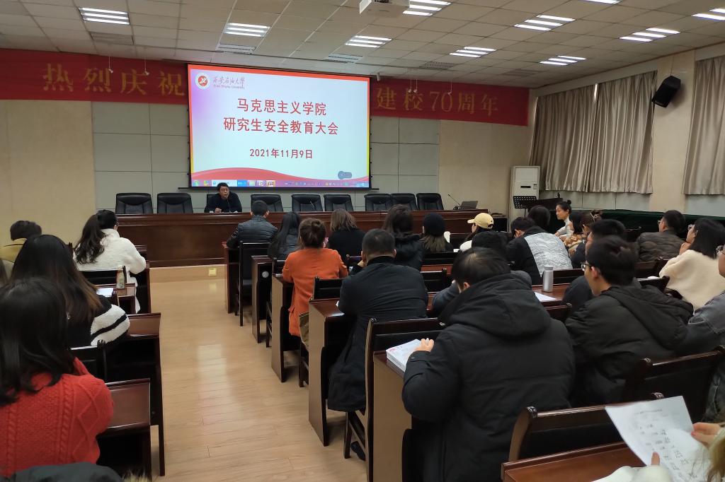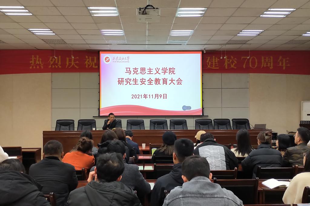 為貫徹落實(shí)學(xué)校安全工作會(huì)議精神,加強(qiáng)對(duì)研究生的日常管理,提高學(xué)生安全防范意識(shí),引導(dǎo)學(xué)生樹立規(guī)矩意識(shí),營(yíng)造健康、穩(wěn)定的校園氛圍,馬克思主義學(xué)院分別于11月8日在鄠邑校區(qū),11月9日在雁塔校區(qū)召開了研究生安全教育大會(huì)。