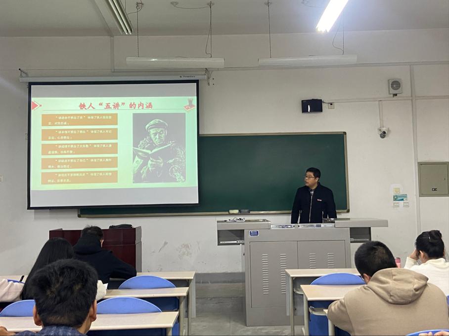 馬克思主義學(xué)院黨總支書記張偉為同學(xué)們講授了《鐵人“五講”的時(shí)代價(jià)值和現(xiàn)實(shí)意義》專題講座。張書記主要從鐵人“五講”的來(lái)歷、內(nèi)涵及時(shí)代價(jià)值和現(xiàn)實(shí)意義出發(fā),為大家生動(dòng)解讀了鐵人王進(jìn)喜“講進(jìn)步不要忘了黨、講本領(lǐng)不要忘了群眾、講成績(jī)不要忘了大多數(shù)、講缺點(diǎn)不要忘了自己、講現(xiàn)在不要割斷歷史”。“鐵人五講”反應(yīng)了鐵人王進(jìn)喜看待成長(zhǎng)進(jìn)步、對(duì)待人民群眾、對(duì)待榮譽(yù)地位、對(duì)待批評(píng)與自我批評(píng),如何處理過(guò)去、現(xiàn)在的關(guān)系等觀點(diǎn)樸素的哲學(xué)觀點(diǎn)。對(duì)同學(xué)們理解鐵人精神的豐富內(nèi)涵、社會(huì)影響及當(dāng)代價(jià)值提供了一把鑰匙。其次,張書記明確指出不管是過(guò)去、現(xiàn)在、還是將來(lái),鐵人“五講”都永不過(guò)時(shí),對(duì)于我們每個(gè)人都有現(xiàn)實(shí)指導(dǎo)意義。鐵人精神時(shí)刻提醒著我們,馬克思主義的理論旗幟、中國(guó)特色的社會(huì)主義道路、全心全意為人民服務(wù)的宗旨就是我們共產(chǎn)黨人的精神支柱。最后,他號(hào)召同學(xué)們向鐵人學(xué)習(xí),充分利用好紅色資源、發(fā)揚(yáng)好紅色傳統(tǒng)、傳承好紅色基因,成為德智體美勞全面發(fā)展的社會(huì)主義合格建設(shè)者和可靠接班人。