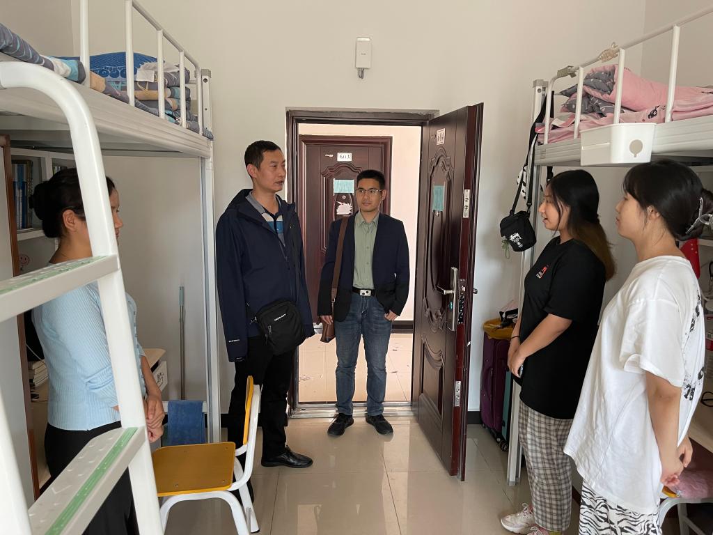 學(xué)院黨委副書記張?jiān)谱藥ш?duì)對(duì)學(xué)生宿舍進(jìn)行走訪與安全檢查。走訪檢查期間,張副書記詳細(xì)詢問了同學(xué)們開學(xué)以來的生活和學(xué)習(xí)情況,希望同學(xué)們和睦相處,共同營造文明友愛、干凈衛(wèi)生、安全有序的宿舍生活環(huán)境;提醒同學(xué)們要自覺遵守學(xué)校宿舍管理規(guī)章制度,要求同學(xué)們積極配合學(xué)校開展的各項(xiàng)安全檢查工作,牢固樹立安全意識(shí),養(yǎng)成良好的行為習(xí)慣;叮囑同學(xué)們?cè)?/span>十一假期要注意安全,嚴(yán)格遵守疫情防控規(guī)定,留校的同學(xué)要多與家人聯(lián)系,利用假期積極充實(shí)和提高自己。