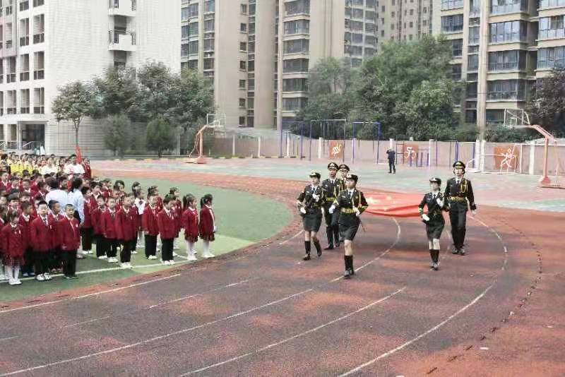 我校大學(xué)生國(guó)旗護(hù)衛(wèi)隊(duì)?wèi)?yīng)邀為陜西師范大學(xué)銘城小學(xué)舉行升旗儀式