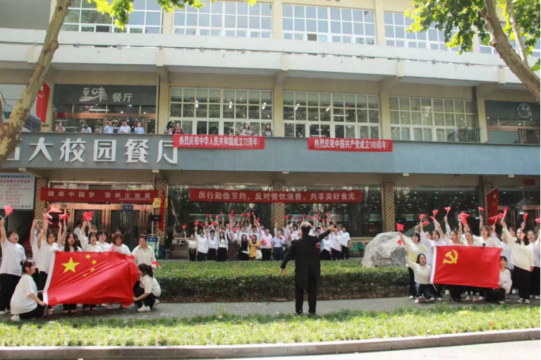 站在“兩個(gè)一百年”奮斗目標(biāo)的歷史交匯點(diǎn),為慶祝中華人民共和國72歲華誕和建黨100周年,9月30日中午音樂系組織師生在雁塔校區(qū)學(xué)生餐廳舉辦“紅歌快閃”活動(dòng),吸引了眾多師生觀看,場面熱烈。副校長陳軍斌,紀(jì)委、規(guī)劃處、石油工程學(xué)院、經(jīng)濟(jì)管理學(xué)院、音樂系主要負(fù)責(zé)人,以及80余名音樂系師生參加了本次“紅歌快閃”活動(dòng)。該活動(dòng)由音樂系黨總支策劃,何云、毛楠、朱玥三位老師指導(dǎo)。音樂系已連續(xù)四年五次舉辦“紅歌快閃”活動(dòng),唱響主旋律,展現(xiàn)師生良好的精神風(fēng)貌。