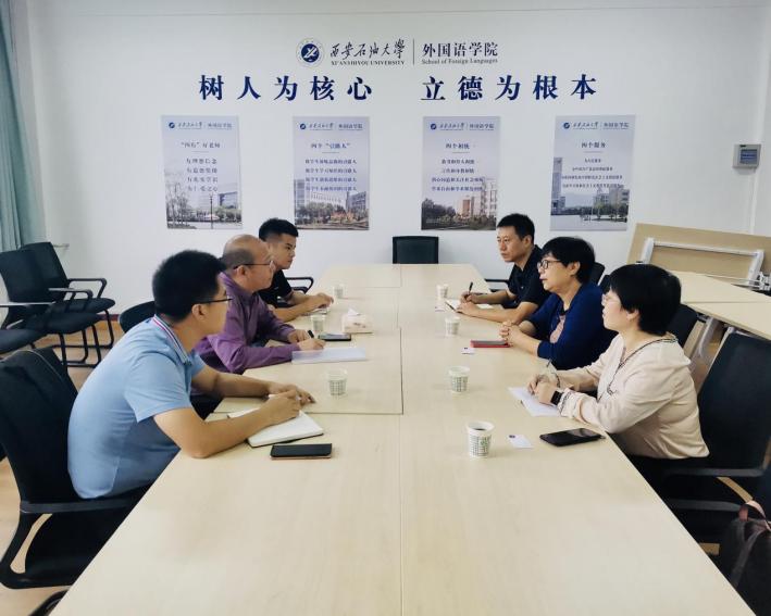 于院長對智慧樹副總裁一行表示歡迎,介紹了西安石油大學的發(fā)展歷程以及外國語學院歷史與現(xiàn)狀及師資力量等情況,回顧了我院2016年以來與智慧樹在課程建設等方面開展的合作交流。于院長表示感謝智慧樹在課程建設方面對方所提供的技術支持,同時,積極支持本次慕課西行---與喀什大學同步課堂的公益項目,雙方進一步加強交流合作,推動校企合作再上新臺階。會上,陳武副院長也就即將開始的同步課堂做了細致的部署,確保課堂同步順利展開。