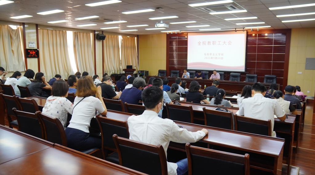 董春詩副書記對(duì)開學(xué)兩周以來思政課教學(xué)工作開展情況做了小結(jié),要求全院教師充分做好教學(xué)準(zhǔn)備、加強(qiáng)課堂管理、維持課堂秩序,確保思政課教學(xué)質(zhì)量。董春詩副書記還通報(bào)了學(xué)??蒲泄ぷ鲿?huì)議精神,他講到科研工作是學(xué)科建設(shè)的生命線,對(duì)教師個(gè)人發(fā)展也至關(guān)重要,希望全院教師能加強(qiáng)科研投入,在項(xiàng)目申報(bào)和論文撰寫上下功夫,提升學(xué)院總體科研水平,為學(xué)校建設(shè)高水平大學(xué)助力。