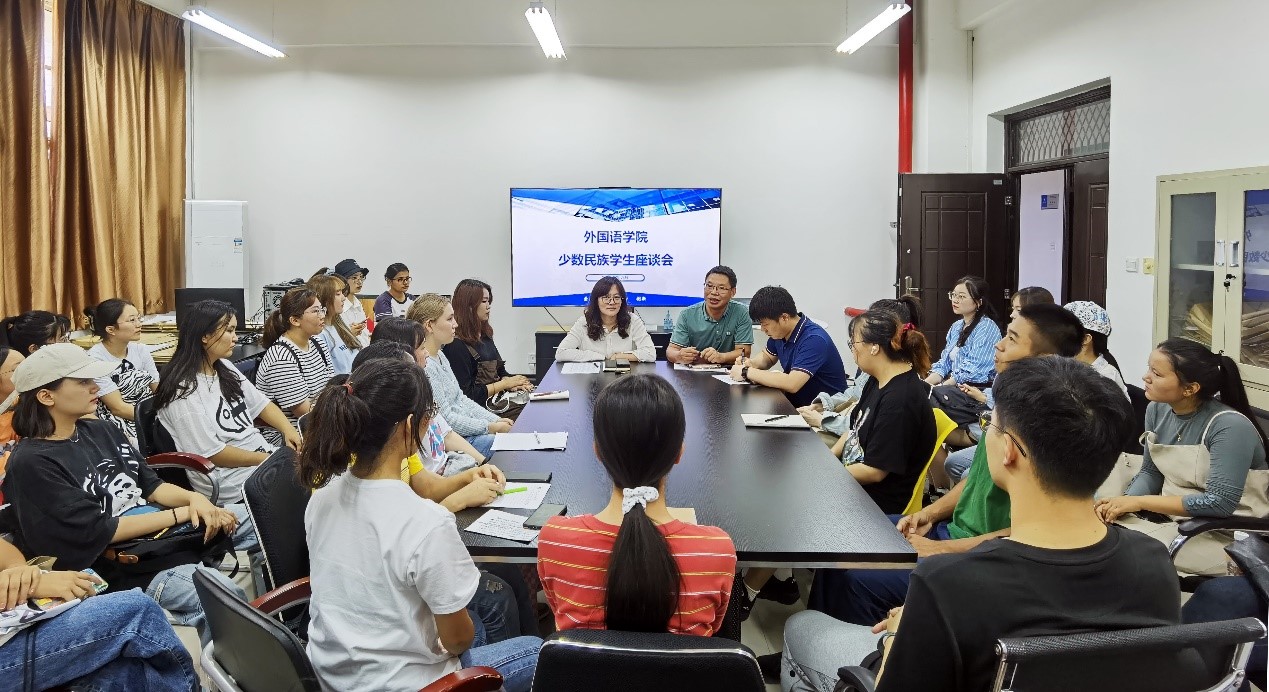 為進一步加強與少數(shù)民族學生的溝通和交流,全面了解學院少數(shù)民族學生學習、生活情況,不斷提升少數(shù)民族學生教育管理服務水平,9月8日下午,外國語學院在崇文樓316會議室組織召開了少數(shù)民族學生座談會。院黨委書記田虹霞、全體學工干部及少數(shù)民族學生參加會議。會議由院黨委副書記王業(yè)青主持。