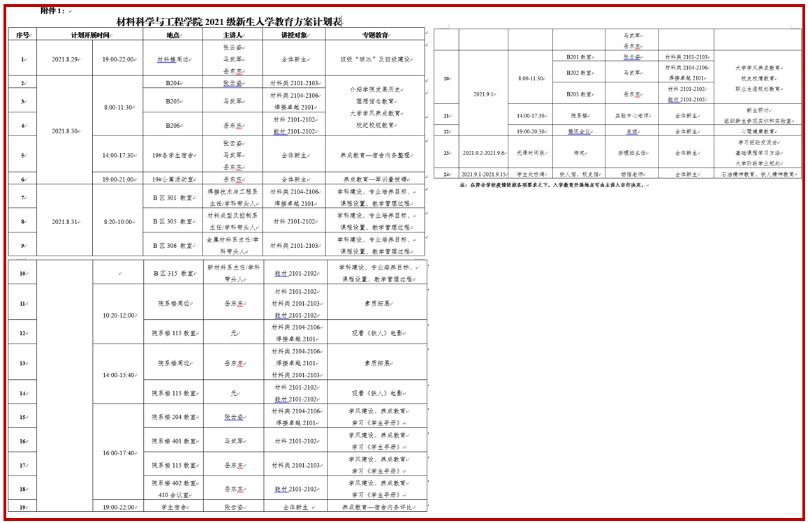 精心組織謀劃,提升育人合力。學院充分認識到新生入學教育是幫助學生盡快適應高校學習和生活的關(guān)鍵環(huán)節(jié),對于專業(yè)人才培養(yǎng)、塑造學生人格、全面成長成才有著非常重要的意義。學院各系、中心、辦公室教師精心組織謀劃,注重把握新生特點和實際需求,制定《材料科學與工程學院2021級新生入學教育方案計劃》,精心設(shè)計每一個教育環(huán)節(jié),認真策劃每一項教育內(nèi)容,充分發(fā)揮學院領(lǐng)導、專家學者和學工干部的引領(lǐng)作用,切實將新生入學教育活動落到實處。
