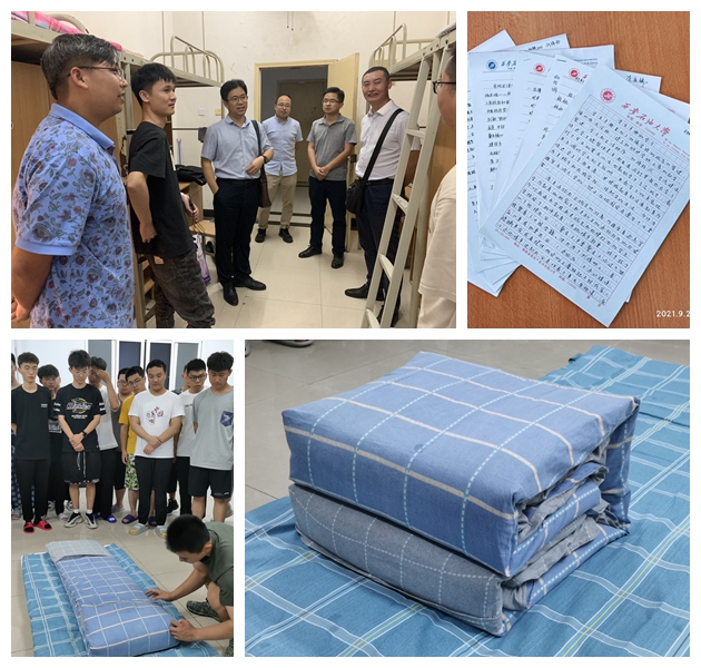 行為養(yǎng)成教育,守校園管理規(guī)定。外出看隊列,進門看內(nèi)務。今年由于疫情防控的原因軍訓暫緩,但是學院高度重視學生自律自立習慣的養(yǎng)成,學院黨委書記宋海洋、黨委副書記張云姿多次查看學生宿舍,并與學生談發(fā)展、話未來。軍人出身的岳東東老師利用每天晚上為學生展示軍訓疊被子的標準,岳老師動作嫻熟,操作規(guī)范、講解清楚,引來同學們陣陣喝彩,疊被子的環(huán)節(jié)讓同學們明白了生活中要一絲不茍,細節(jié)決定成敗!另外,為了建立統(tǒng)一規(guī)范的學生管理制度、綜合測評體系,將學生德育、智育、體育、勞育一一量化,導向明確、科學有效、合理評價,學院全體學工干部組織學生分批次學習了《2021版西安石油大學學生手冊》并認真記錄學習筆記,使學生更快速地熟悉學校各項管理規(guī)定,樹立規(guī)矩意識。