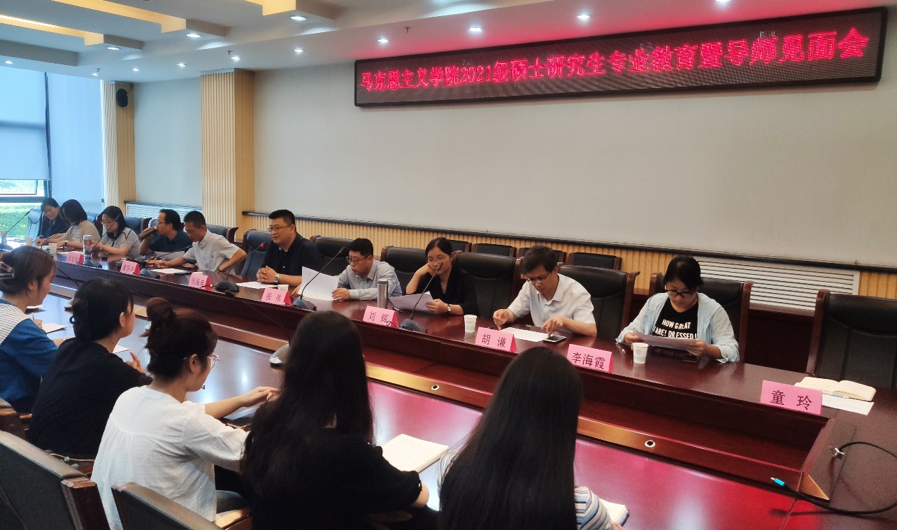 9月1日下午,馬克思主義學院2021級研究生專業(yè)教育暨導師見面會在鄠邑校區(qū)圖書館第二會議室順利舉行。會議由張海濤院長主持,學院黨總支書記張偉、副院長董春詩、劉輝教授、郭艷英副教授等10位老師參加了會議。