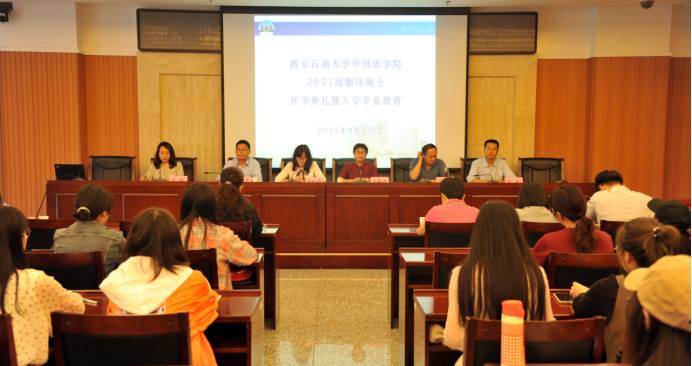 9月1日下午,外國語學(xué)院2021級翻譯碩士研究生開學(xué)典禮暨入學(xué)專業(yè)教育在鄠邑校區(qū)圖書館第一會議室舉行。學(xué)院黨政領(lǐng)導(dǎo)班子、教授委員會主任、翻譯碩士研究生導(dǎo)師和2021級47名翻譯碩士研究生參加開學(xué)典禮。開學(xué)典禮由劉輝副院長主持。