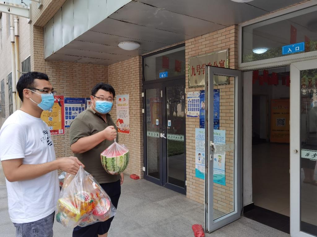 8月5日,學(xué)院黨委副書(shū)記劉冰在鄠邑校區(qū)看望留校參加殘?zhí)貖W會(huì)開(kāi)閉幕式演出排練的學(xué)生,校團(tuán)委殘?zhí)貖W會(huì)群演帶隊(duì)老師史陽(yáng),2020級(jí)輔導(dǎo)員、群演帶隊(duì)老師馬舒宇及輔導(dǎo)員劉思文參加。在炎炎夏日,同學(xué)們克服重重困難、精神飽滿(mǎn)、堅(jiān)持排練,為力爭(zhēng)舉辦一屆高水平的賽事做出貢獻(xiàn)。劉冰副書(shū)記代表學(xué)院向?qū)W生代表送去西瓜等慰問(wèn)品,希望同學(xué)們認(rèn)真排練、注意休息、全面展示出機(jī)械學(xué)不畏艱難、敢為人先的精神風(fēng)貌。隨后,劉冰副書(shū)記一行向因配合疫情防控在宿舍進(jìn)行自我隔離的同學(xué)送上了食品、生活必需品等,感謝隔離的同學(xué)能夠積極配合學(xué)校的防疫工作。