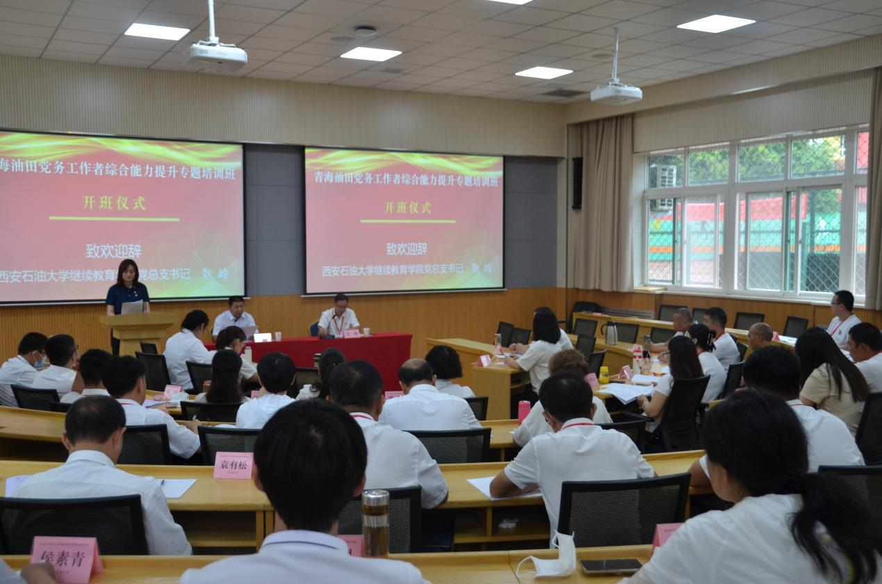 7月26日上午,青海油田黨務(wù)工作者綜合能力提升專題培訓(xùn)班在我校明德校區(qū)順利開班。來自青海油田消防支隊(武裝部、保衛(wèi)部)、采油四廠、物資裝備公司和勘探事業(yè)部等四家單位的46位黨務(wù)工作者參加培訓(xùn)。青海油田公司第二派駐紀檢組副組長吳海和西安石油大學(xué)繼續(xù)教育學(xué)院黨總支書記耿嶺參加了開班儀式。儀式由班主任劉曉曦主持。