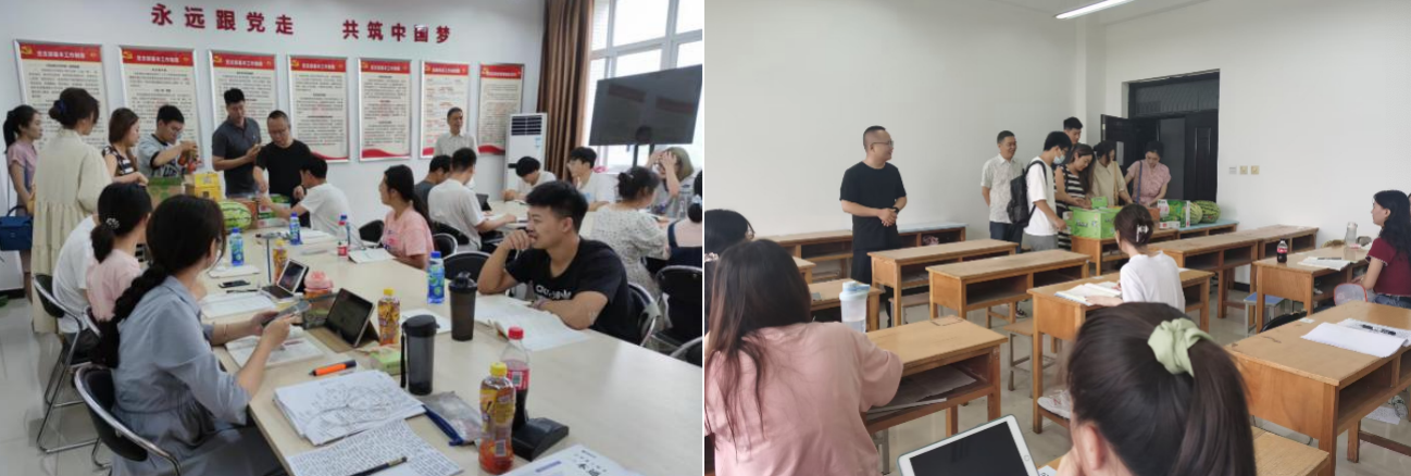 王宏衛(wèi)書記代表學(xué)院向暑期留校復(fù)習(xí)考研學(xué)生表示慰問,希望大家傳承“好學(xué)力行、自強(qiáng)不息”的校訓(xùn),勤奮好學(xué)、身體力行,剛毅堅(jiān)卓、發(fā)憤圖強(qiáng)。一是要合理安排時(shí)間,認(rèn)真復(fù)習(xí)備考,把握生活節(jié)奏,注重勞逸結(jié)合,提高學(xué)習(xí)效率;二是要嚴(yán)格遵守假期留校學(xué)生管理要求,執(zhí)行疫情防控各項(xiàng)規(guī)定,樹立安全意識,守好安全底線;三是要堅(jiān)持學(xué)習(xí)并保持自律,高效合理利用暑假時(shí)間,經(jīng)得住壓力、耐得起寂寞,風(fēng)雨兼程,全力以赴,朝著既定目標(biāo)奮勇前行。王剛副書記希望大家端正心態(tài)、樹立信心,注重策略、提高技巧,明確目標(biāo)、堅(jiān)持到底,叮囑大家注意寢室、飲食、交通安全,祝愿大家取得優(yōu)異成績。隨后,老師們?yōu)橥瑢W(xué)們送上了西瓜、飲料、牛奶等慰問品,為備考學(xué)生帶來了絲絲清涼、溫情關(guān)心和無限鼓勵(lì)。