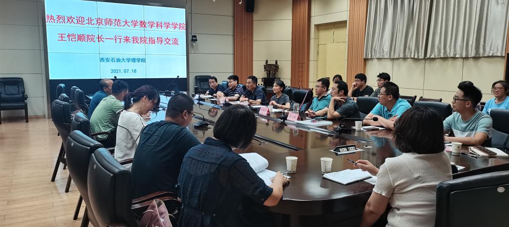 在工作交流環(huán)節(jié),傅海威院長首先介紹了西安石油大學(xué)理學(xué)院的歷史沿革,學(xué)科發(fā)展現(xiàn)狀,師資隊伍建設(shè)現(xiàn)狀,學(xué)院機構(gòu)設(shè)置等情況。王愷順院長詳細介紹了北京師范大學(xué)數(shù)學(xué)科學(xué)學(xué)院的發(fā)展現(xiàn)狀,本碩博招生規(guī)模,專業(yè)課與公共課教學(xué)情況,兩校區(qū)辦學(xué)等情況。雙方就數(shù)學(xué)學(xué)科專業(yè)建設(shè)、人才引進、管理服務(wù)、教師的教學(xué)工作量等問題進行了深入的交流。此外,雙方還就理學(xué)院“應(yīng)用統(tǒng)計學(xué)”專業(yè)學(xué)位點建設(shè)、師資隊伍建設(shè)等難點問題進行了深入的分析、交流和探討。