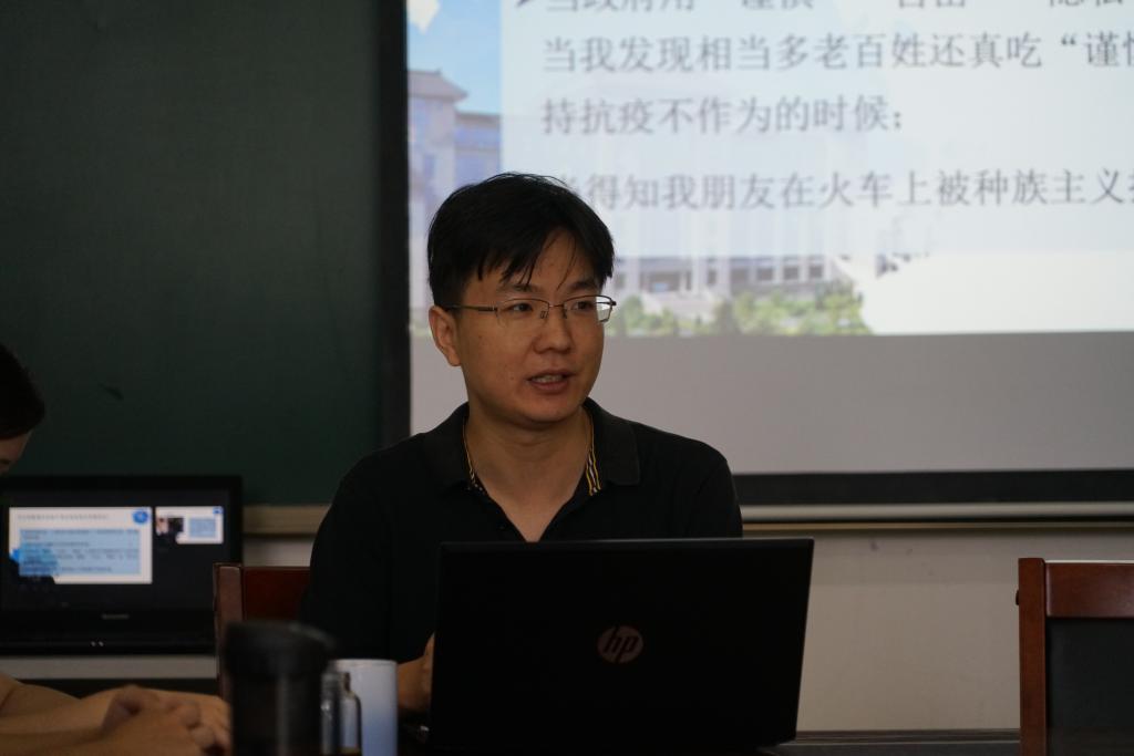 李孝祥老師首先強(qiáng)調(diào)了筑牢高校意識(shí)形態(tài)陣地的重要性與緊迫性,指出強(qiáng)力筑牢意識(shí)形態(tài)工作前沿陣地是一項(xiàng)戰(zhàn)略工程、固本工程、鑄魂工程,事關(guān)全面貫徹黨的教育方針,事關(guān)中國(guó)特色社會(huì)主義事業(yè)后繼有人。接著,李老師從堅(jiān)定“四個(gè)自信”牢牢把握意識(shí)形態(tài)工作的主動(dòng)權(quán)入手,以近期西方媒體的部分不實(shí)報(bào)道為例,向大家澄清報(bào)道中的矛盾與錯(cuò)誤。針對(duì)西方媒體對(duì)中國(guó)疫苗等問(wèn)題的無(wú)端指責(zé),李老師列舉事例,闡明我國(guó)堅(jiān)持“人民至上、生命至上”原則,積極推動(dòng)構(gòu)建人類衛(wèi)生健康共同體的大國(guó)擔(dān)當(dāng)。最后,李老師鼓勵(lì)黨員師生發(fā)揮先鋒模范作用,敢于斗爭(zhēng)、敢于勝利,主動(dòng)澄清模糊認(rèn)識(shí)、劃清是非界限,努力成長(zhǎng)為又紅又專、德才兼?zhèn)?、全面發(fā)展的中國(guó)特色社會(huì)主義合格建設(shè)者和可靠接班人。
